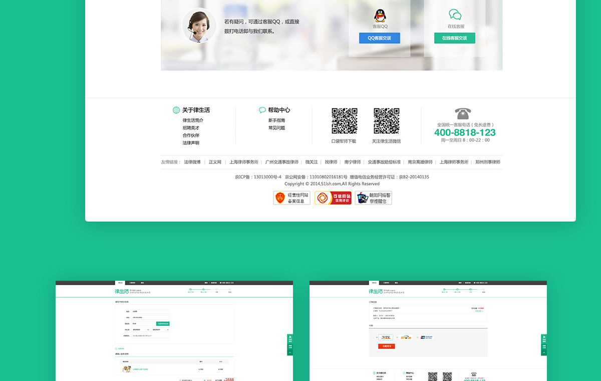 nicedesign 奈思设计与律生活携手,为律生活打造在线法律服务平台。律生活整合律师和律所资源,利用互联网及移动互联网平台,打造一个垂直性的综合法律服务资源整合平台,为产品研发、法律服务、市场营销、品牌管理等创新法律服务而服务,真正做到了集在线法律信息服务、法律电商服务、整合营销服务为一体。